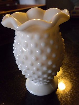 Title (ebay affiliate link): Vintage Fenton 3.75" Milk-Glass White Hobnail 8 Point Crimped Vase Scalloped