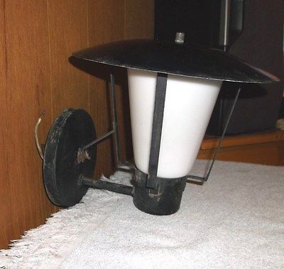 Title (ebay affiliate link): Vintage Mid Century Modern Wall Porch Light Sconce Milk Glass Shade Tin Atomic