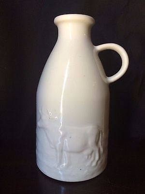 Cow White Milk Glass Jug Vintage with Handle Creamer 8" Tall Country Decor
