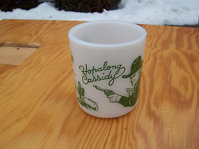 HopAlong Cassidy Milk glass cup Green graphics No cracks Cowboy Mug