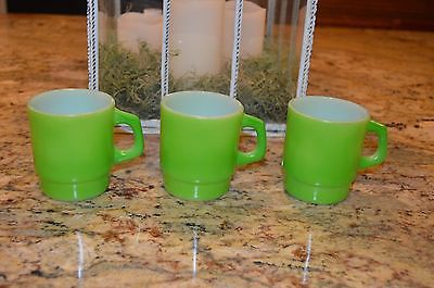 Vintage Green Lustreware Anchor Hocking Milk Glass Oven Ware Stack Mugs Set of 3
