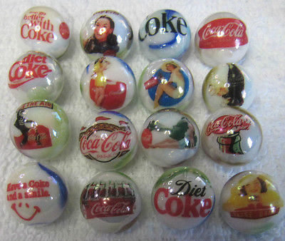 Title (ebay affiliate link): COCA COLA SODA POP GLASS MARBLES 5/8 SIZE COLLECTION