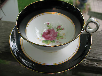 VINTAGE STUNNING TEA CUP AND SAUCER OLD ROYAL WETLEY RED ROSE BLACK TRIM A1