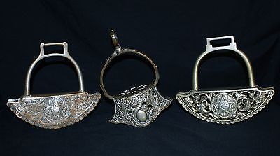Title (ebay affiliate link): Set of 3 Antique Decorative Ornate Commemorative Brazilian Metal Horse Stirrups
