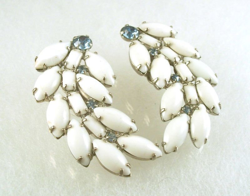 Vintage Milk Glass Rhinestone Earrings BIG 2 in
