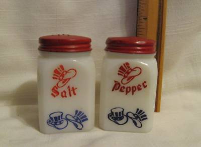 Vintage Milk glass Salt & Pepper shaker hat patriotic