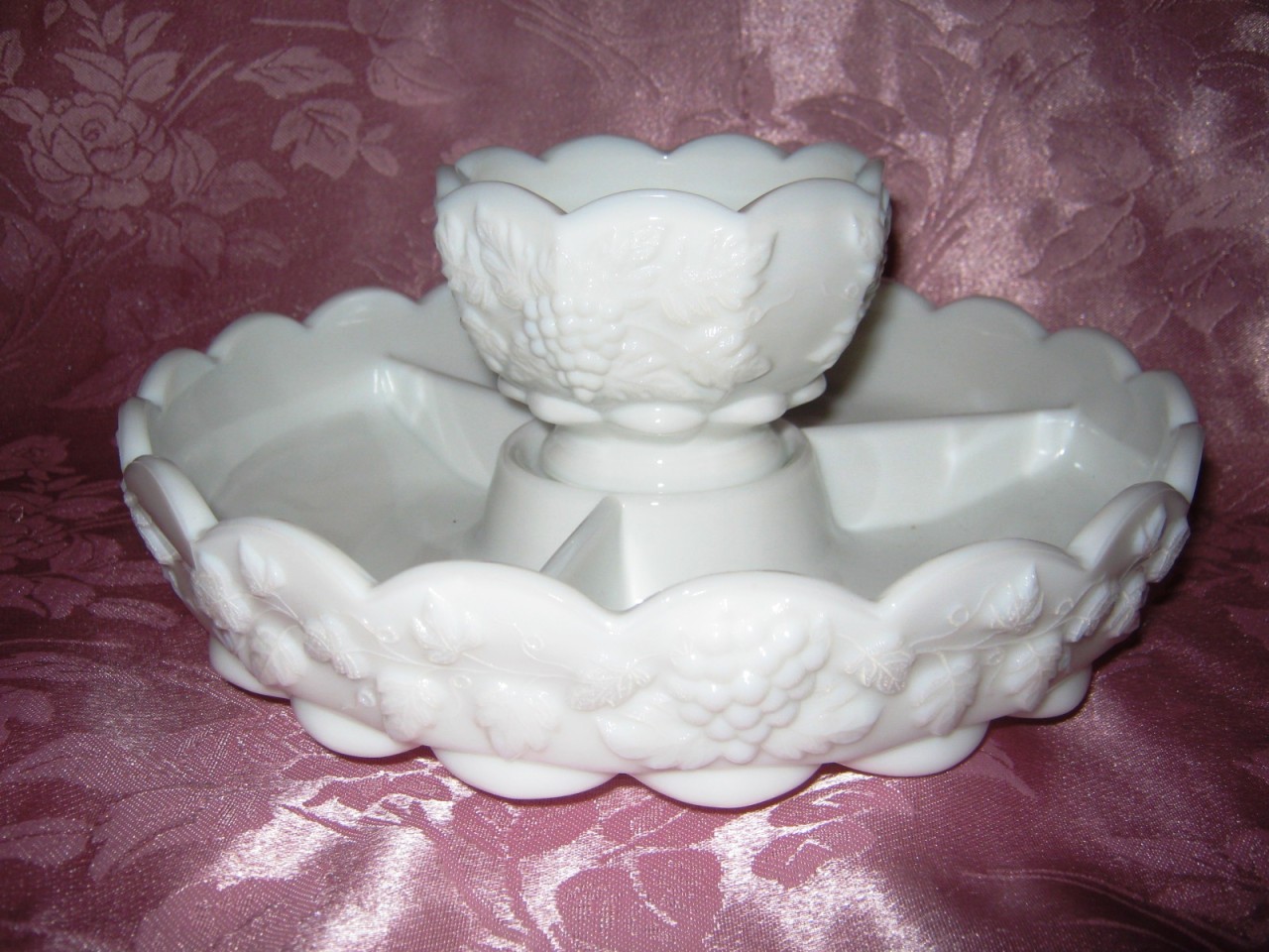 WESTMORELAND GLASS WHITE MILK GLASS 2 PC SERVING DISH
