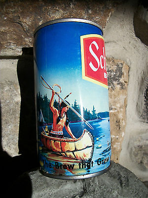 Vintage SCHMIDT WILDERNESS INDIAN CANOE FISHING SCENE Steel Beer Can