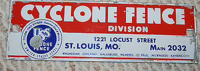 Vintage 1940's Cyclone Fence Porcelain Sign Division St. Louis Missouri