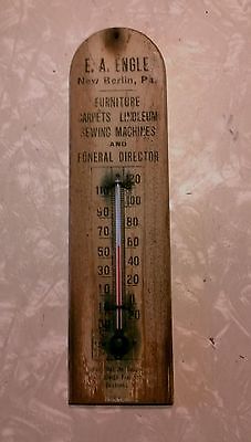 VINTAGE WOOD EA ENGLE THERMOMETER SIGN NEW BERLIN PA FUNERAL SEWING MACHINES
