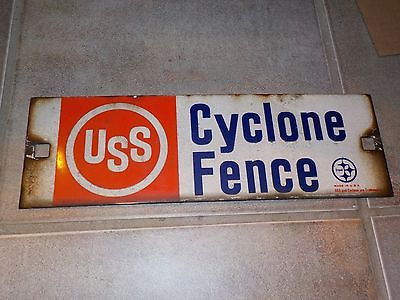 VINTAGE ANTIQUE PORCELAIN FENCE SIGN CYCLONE FENCE UNION MADE US STEEL LOGO
