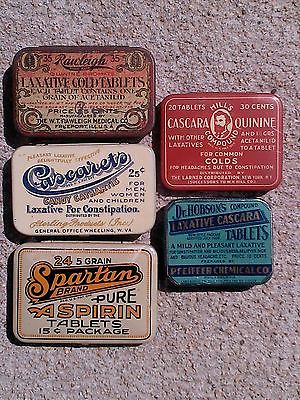 Vintage Lot of (5) Quack Medicine Tablets Pills Tin - Hill's, Dr. Hobson's, etc.