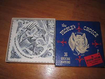 set of 35 1952 Republican Ike & GOP Cartoon Paper Cocktail Napkins Anti Truman