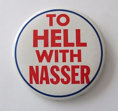 Title (ebay affiliate link): Large 3 1/2 In. To Hell With Nasser Button-Egyptian President 1956-1970