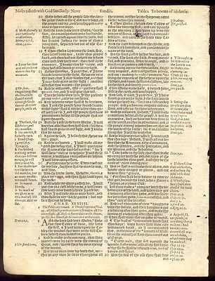 Title (ebay affiliate link): 1597C Geneva Black Letter Bible Leaf/RARE/EXODUS 33/MOSES SEES GODS GLORY!