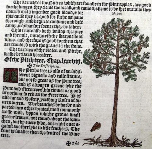 Title (ebay affiliate link): 1578 Handcol WOODCUT - PINE TREE Initial - Herbal Borcht LEAF ENGLISH EDN
