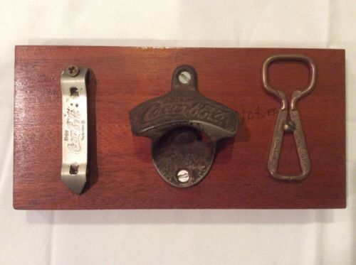Title (ebay affiliate link): Vintage Coca-Cola Three Coke Bottle Openers on a Homemade Display 1940 1950 1960