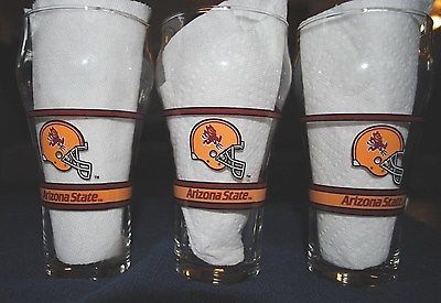 Coca Cola Arizona State Sun Devils drink glass mug Set of 3 BEER glasses ASU