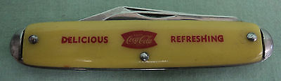 Vintage Coca Cola 2 Blade Folding Knife Yellow & Red