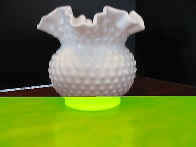 Vintage Fenton White Milk Glass Hobnail Rose Bowl Vase Ruffled Crimped Top