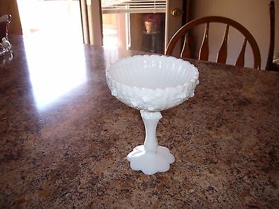 Vintage Fenton MIlk Glass Pedestal Candy Dish With Detailed Raised Roses/Rosebud