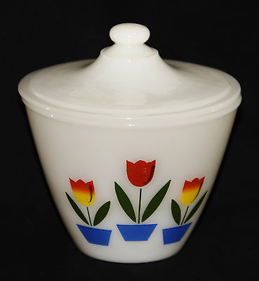 Vintage Fire King Tulip Milk Glass Grease Jar with Lid Beautiful