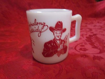 VINTAGE, ANTIQUE HOPALONG CASSIDY MILK GLASS CUP,MINT,WHITE , RED PICTURE,CHILD