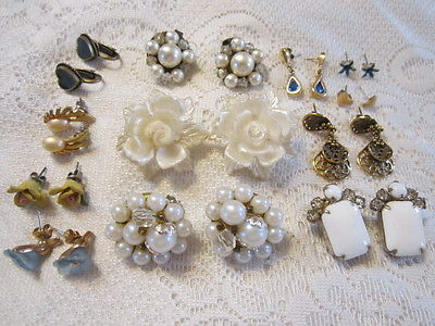 Title (ebay affiliate link): 12 Pairs of Awesome Vintage/Now Earrings-pearl,milk glass,enamel & more 2 JAPAN