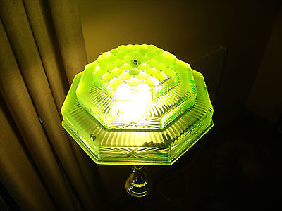 Title (ebay affiliate link): Vintage Green 3 Teared 8 Sided Hexagonal Depression Glass Light Shade , NICE !!!