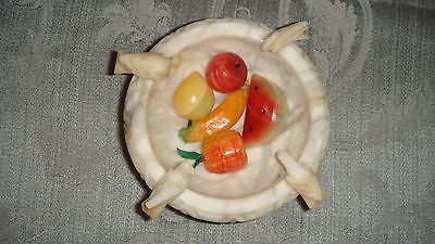 Vintage Italian Carved Alabaster Marble Bird Bath Fruit bowl compote with Fruit