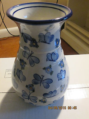 Title (ebay affiliate link): W R Unikat Polish Signed Butterflies in Blue w flowers Large Pottery Vase