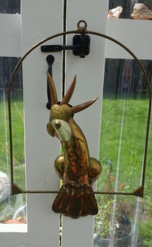 Large Vintage Brass/Copper Wall Art Bird Cockatoo On Perch Mexico