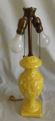 Vintage Yellow Ceramic Grape Vine Table Lamp Antique Cloth Cord Chic Shabby