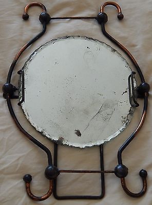 DECORATIVE ANTIQUE EASEL BACK TABLE MIRROR SHAVING VANITY BURNISHED COPPER FRAME