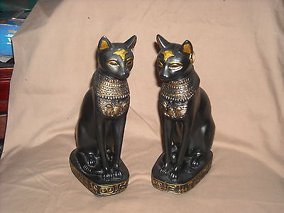 ~~~~RARE UNIQUE PAIR OF EGYPTIAN FIGURINES BLACK CAT STATUTES~~~~~