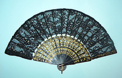 ANTIQUE EUROPEAN BLACK LACQUER LACE FAN