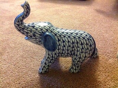 Blue and White Decorative Glass Elephant