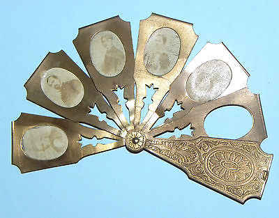 RARE ANTIQUE GILT METAL REDDITCH ? NOVELTY MINIATURE FAN SHAPED PHOTO FRAME