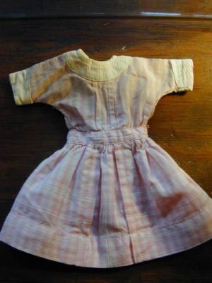 VINTAGE / ANTIQUE DOLL DRESS PINK & WHITE