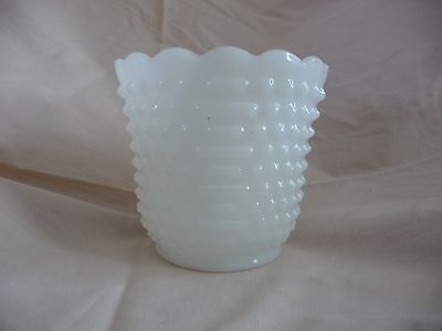 Title (ebay affiliate link): Vintage Milk Glass Hobnail Patterned Fire King Oven Ware Vase-Planter-Jardiniere