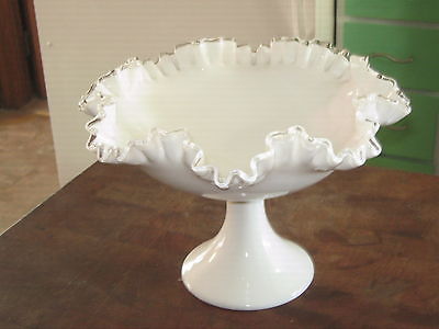 Fenton Large Silver Crest Milk Glass Footed Compote