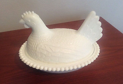 Vtg. White Milk Glass Indiana Covered Hen Dish
