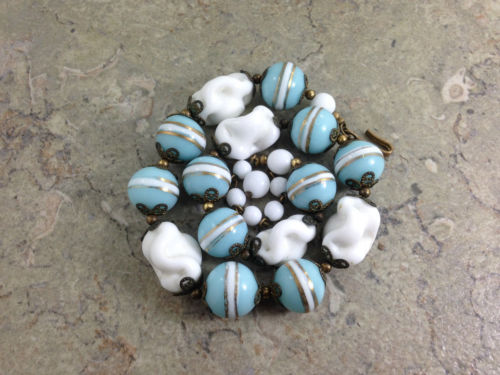 Title (ebay affiliate link): Rare White Turquoise Gold Stripe Venetian Murano Necklace. Milk Glass Popcorn Be
