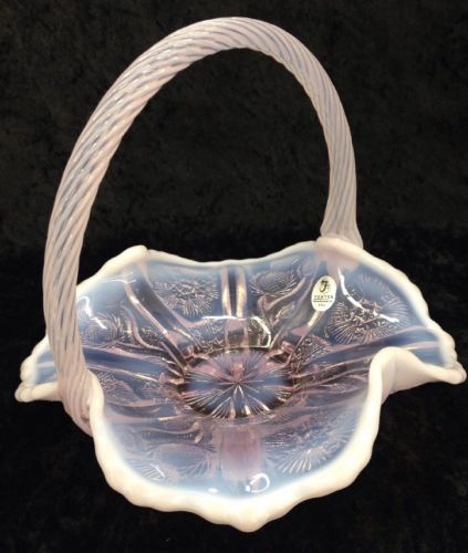 Title (ebay affiliate link): Fenton Pink Milk Glass Opalescent Art Glass Basket/Bowl Footed