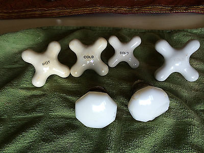 Lot of vintage porcelain faucet/tap handles and milk glass doorknobs