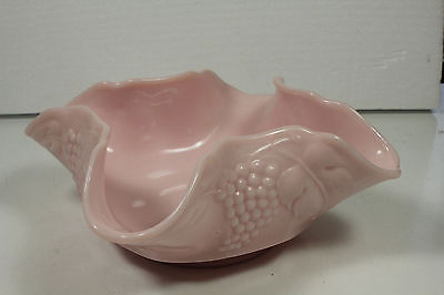 Title (ebay affiliate link): Pink Milk Glass Vintage Bowl Crimped Edge and Grape Vine Motif 8" Square