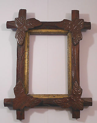 Antique carved wood FRAME late 1800s LEAF corners for 6" x 4" picture
