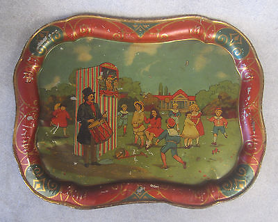 Tin lithographed Punch & Judy Tray not marked turn of 20th century shaped