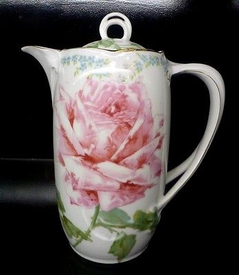 ANTIQUE BAVARIAN ROSE COFFEE / CHOCOLATE POT SIGNED LA FRANCE