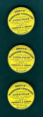 Three, c1916 "DREF'S MANDRAKE COMPOUND LIVER PILLS" Tins, Apothecary, Medical NR
